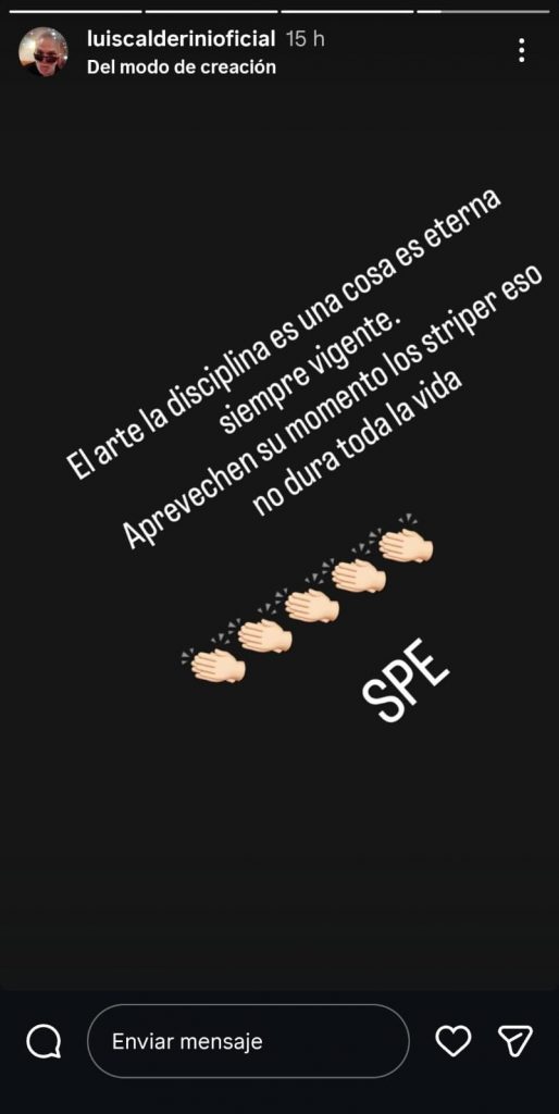 Luis Calderini dijo que estas clases que se ven en redes sociales y hasta escuelas de danza, no tienen nada que ver con el verdadero objetivo del arte o la gimnasia, “esas clases o como se llame lo que hacen, no tiene nada que ver con el mundo del arte, de la danza pero lastimosamente hay cada vez más personas que hacen esto, pululan últimamente, cuando uno es profesional y conoce de arte, a uno le da la impresión de que más bien se prostituyen, esa no es la gimnasia artística, es una falta de respeto al arte”.