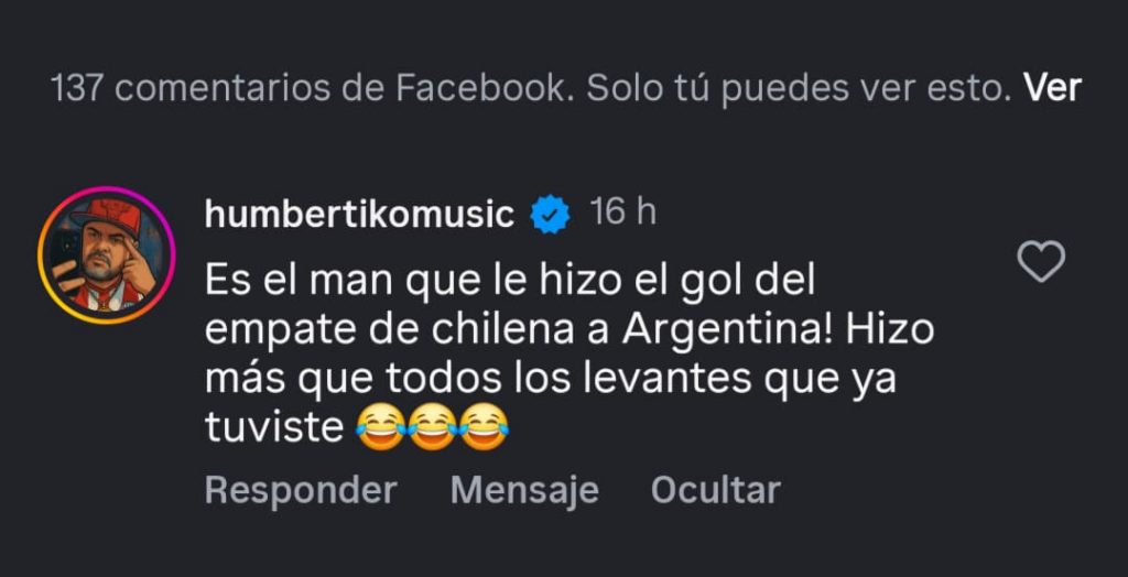 “Es el man que le hizo el gol del empate de chilena a Argentina! Hizo más que todos los levantes que ya tuviste”, disparó Humbertiko,