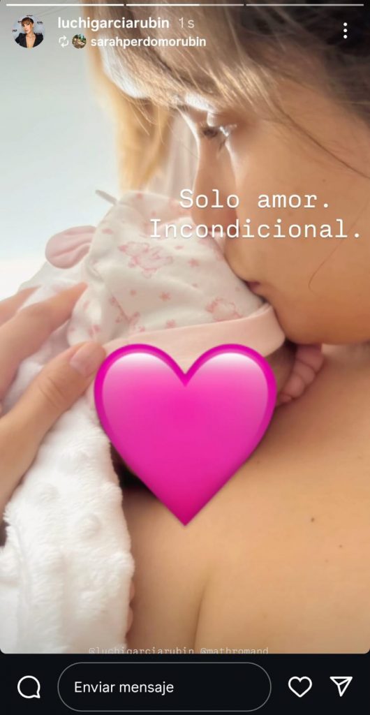 Minutos después, Luchi publicó una segunda imagen que enterneció a sus seguidores, en la foto se la ve recostada, con su pequeña en el pecho, dándole un beso en la frente mientras le cubre el rostro con un emoji. Acompaño esta historia con un breve pero profundo mensaje, “solo amor incondicional”.